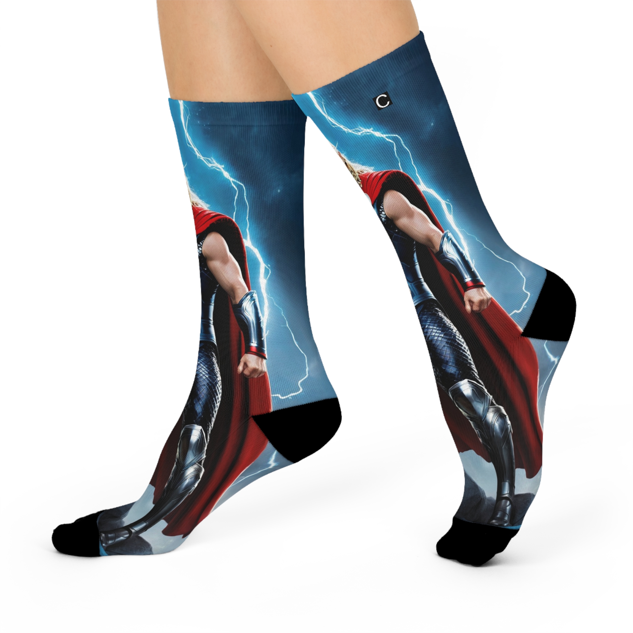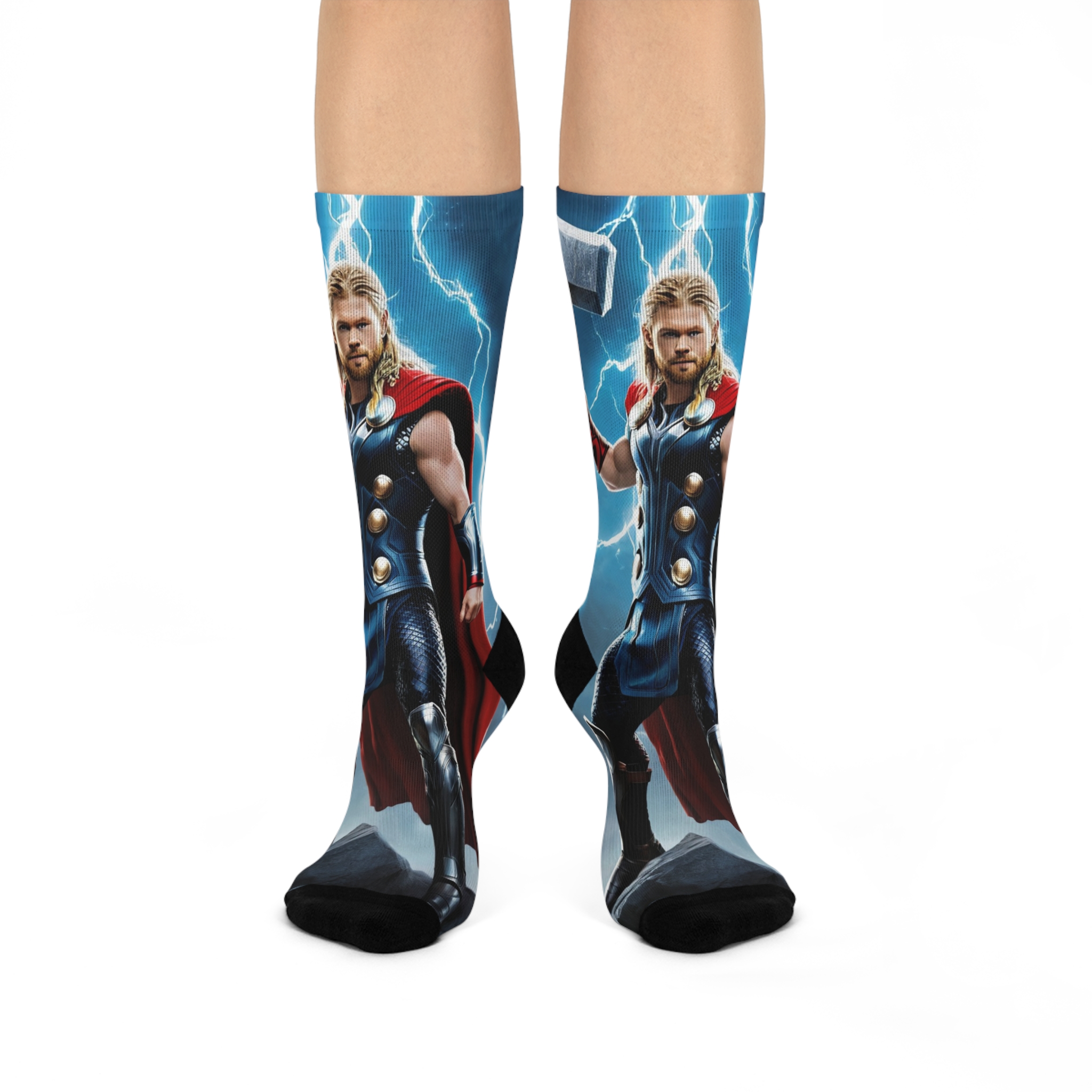 Feel the storm rumble beneath your feet. These electrifying socks channel pure thunder god energy—lightning bolts, raw power, and a hammer only legends can lift.